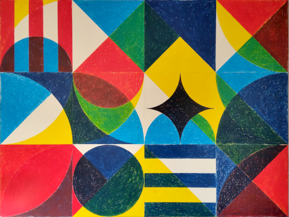 In de geometrische composities is ruimte voor afwijking en onregelmatigheid. Zichtbare markeringen, textuur en niet volledig uitgelijnde kleurvlakken maken onderdeel uit van het werkproces. De expositie laat daarmee zien hoe technische precisie en toeval naast elkaar kunnen bestaan binnen één beeldtaal.