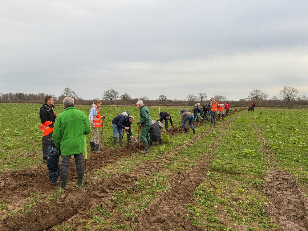 LAND VAN CUIJK – Vrijwilligers en wethouder Antoinette Maas plantten op 10 december in de Maasheggen bij Beugen 400 meter nieuwe hagen als start van verdere natuurontwikkeling richting de Natuurvisie-doelstelling van 400 hectare nieuwe natuur vóór 2030.