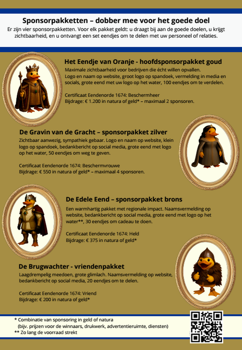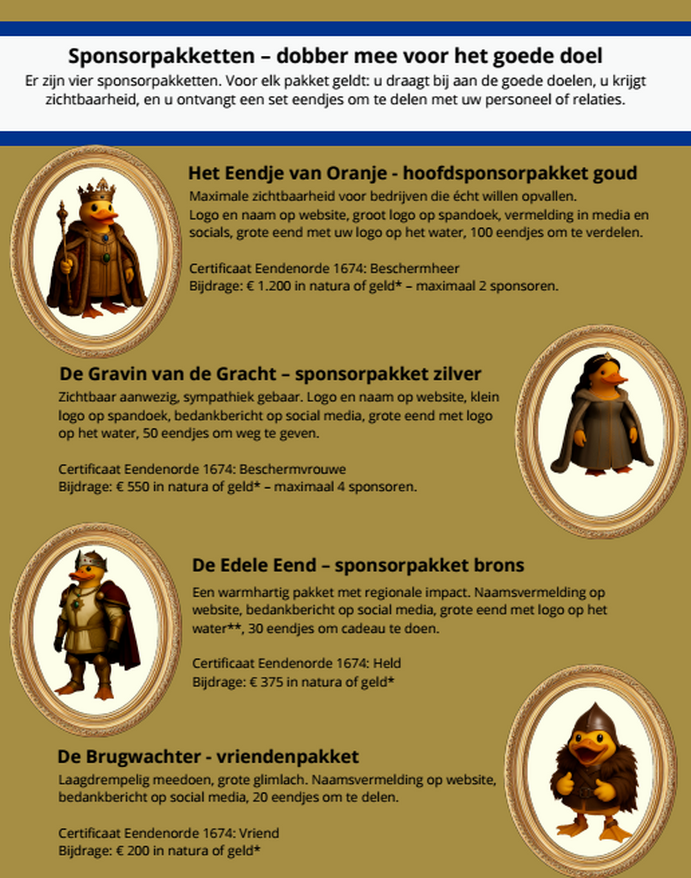GRAVE – In de Oude Haven van Grave vindt op tweede paasdag, maandag 6 april 2026, voor het eerst de Grachteendenrace plaats. Tijdens het Historisch Spektakel laat Lionsclub Land van Cuijk en Overmaze duizenden badeendjes te water om geld in te zamelen voor Alzheimer Land van Cuijk en Gennep en het Parkinson Café Land van Cuijk.