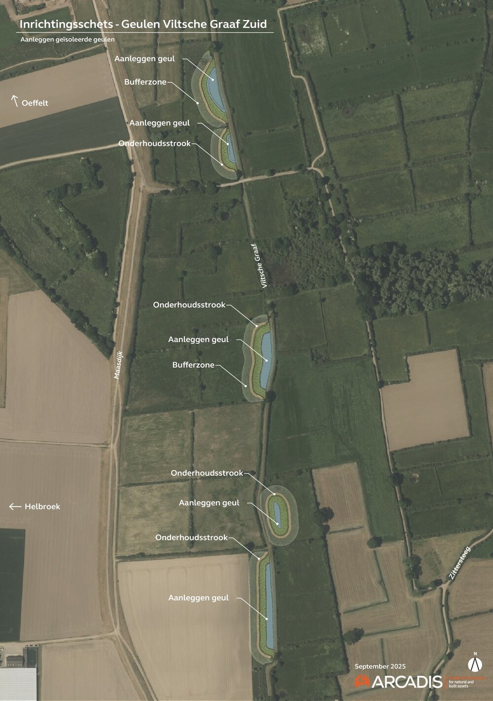 Ook bij de Viltsche Graaf zijn wijzigingen doorgevoerd. Zowel in het noordelijke als het zuidelijke deel worden de geulen minder diep aangelegd en voorzien van een kleibodem. In het noordelijk deel wordt de drempel verlaagd, waardoor vissen eenvoudiger kunnen migreren tussen de geul en de beek Viltsche Graaf. In het zuidelijke deel zijn de drempels volledig uit het ontwerp verwijderd om mogelijke natschade aan nabijgelegen percelen te voorkomen of niet te laten toenemen.
