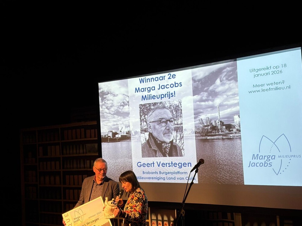 Geert Verstegen neemt Marga Jacobs Milieuprijs in ontvangst: ‘Een belangrijke erkenning na 44 jaar activisme’