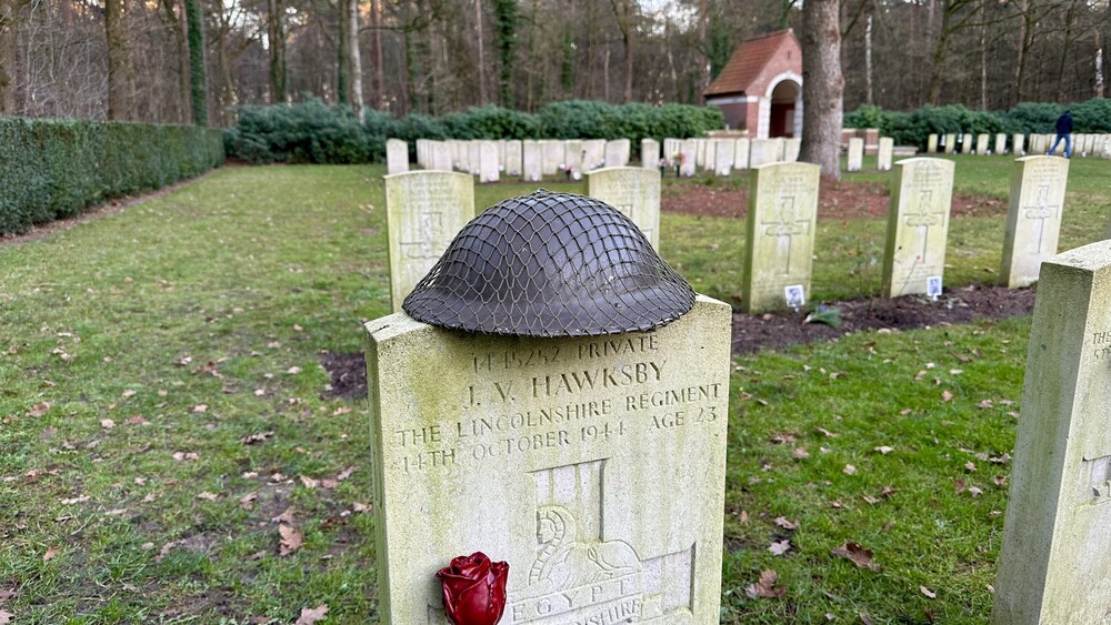 OVERLOON - Op Overloon War Cemetery is een unieke geluidsopname afgespeeld van de Britse militair John Victor Hawksby, die in oktober 1944 sneuvelde tijdens de gevechten bij Overloon. De opname, waarin Hawksby zingt voordat hij naar het front vertrok, werd in 2024 door zijn familie overgedragen aan de Overloon War Chronicles Foundation.