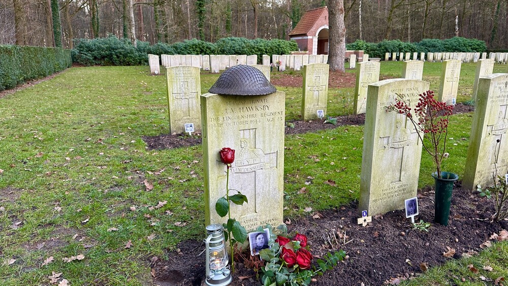 Op kerstavond was de stem van Hawksby te horen op Overloon War Cemetery, waar traditioneel honderden kaarsen worden ontstoken ter nagedachtenis aan de 281 militairen die daar begraven liggen.