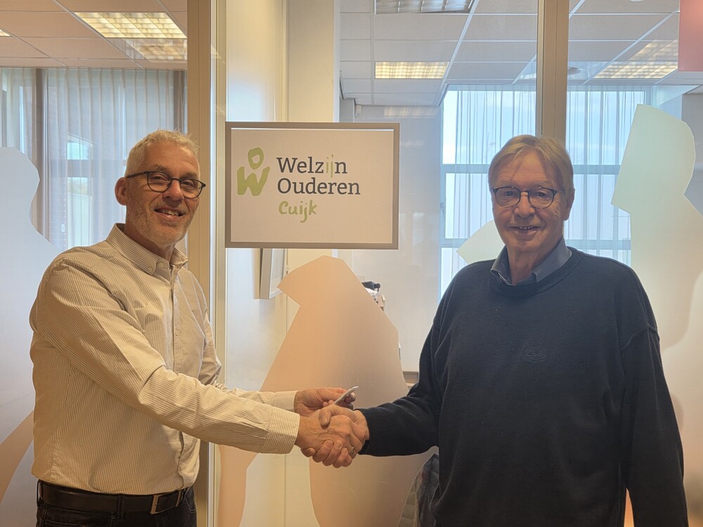 CUIJK – Het voorzitterschap van Welzijn Ouderen Cuijk is overgedragen van Gert Thijssen, voorzitter van Welzijn Ouderen Land van Cuijk, aan Piet van de Koolwijk. Met deze benoeming is het bestuur weer volledig.