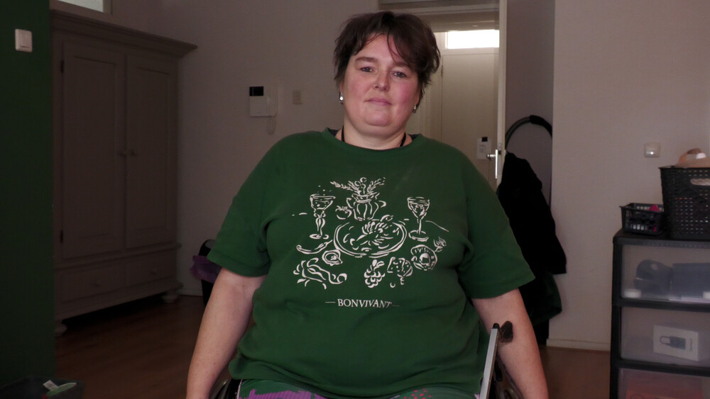 Dat laatste is het gevolg van een slepend traject om vanuit de Wmo een voor haar passende rolstoel te bemachtigen. “Ik zou een handbediende rolstoel met wielondersteuning en een handbike krijgen”, vertelt ze. “Daarvoor hebben we aangeklopt bij Welzorg Nederland. Het zou een week of drie duren, en ter overbrugging kreeg ik een elektrische rolstoel. Die heb ik nu nog steeds, omdat het ze nooit gelukt is om de bestelde rolstoel te leveren. Na een half jaar zijn we overgestapt naar Medipoint in de hoop op meer succes. Maar ook daar is het nog steeds niet gelukt en blijf ik maar wachten en wachten. Ze hebben me in de tussentijd wel een handbediende duwrolstoel gegeven die ergens in het magazijn stond, maar die is niet aangepast op mijn lichaam en zorgt voor ernstige, aanvullende klachten. De ondersteunde wielen voor mijn rolstoel zijn wél al geleverd. Maar door een kapotte accu zijn ze al na een paar honderd meter leeg zijn, en het is een verkeerde variant is die niet in combinatie met de handbike kan."